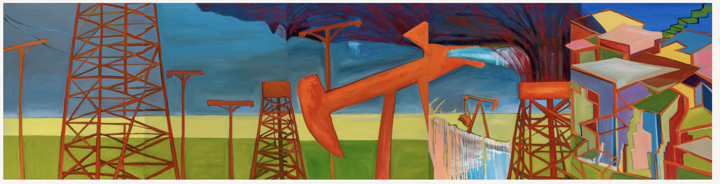 Barroso II (Campo La Rosa, 1922), 2021. Oil on canvas - five panels each 4’ x 5’
